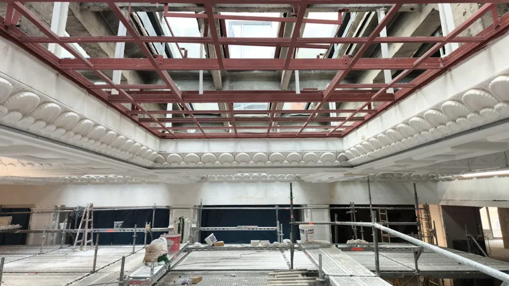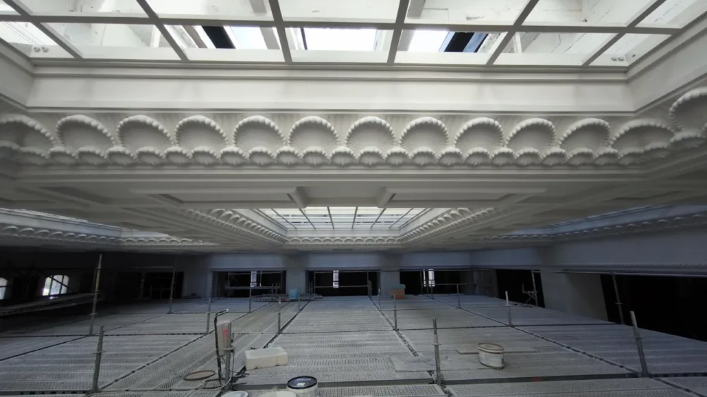 A Stukkó Line Kft. munkája egyszerre volt épületszobrászati műszaki bravúr és művészi rekonstrukció. A restaurálás során az épület ismét visszakapta eredeti hangulatát, miközben megőrizte a múlt rétegeinek tanújeleit is. Következő cikkünkben bemutatjuk az eredményt, az átadást és az új funkciót, amit ez a csodálatos belső csarnok kapott…